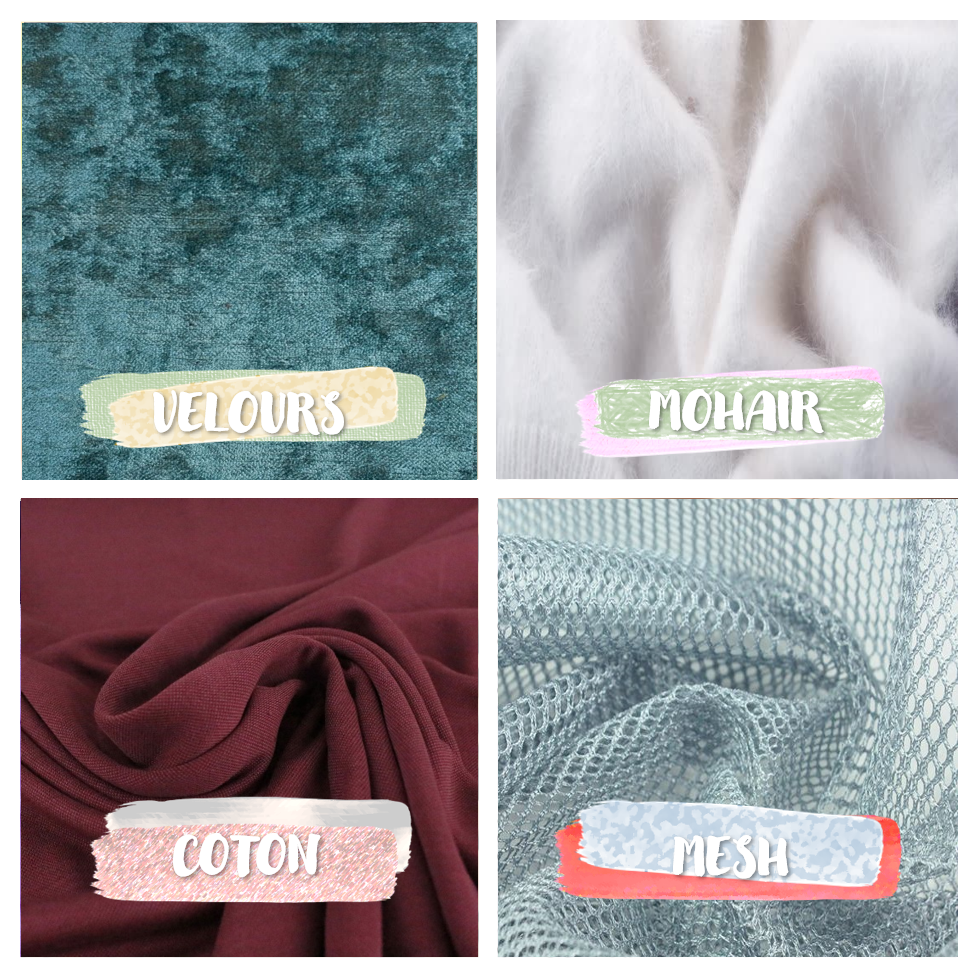 - Le mesh, un tissu micro-aéré très léger qu'on retrouve aussi sur les pièces de sport pour leur côté transparent et ultra respirant en forme de "résille"