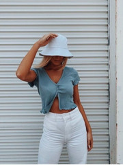 La Soft Girl porte principalement des crops tops au rendu "romantique", avec froufrous ou volants, aux manches ballons ou en vaguelettes, ou encore au fini noués ou froncés. On peut aussi retrouver des chemises ou des blouses un peu plus #backtoschool, ou des sweats et des gilets dans sa garde-robe. Le point commun entre ces pièces est qu'elles ont toutes des coupes assez simples et très girly par leurs couleurs souvent rattachées aux pastels pour le côté doux et frais.